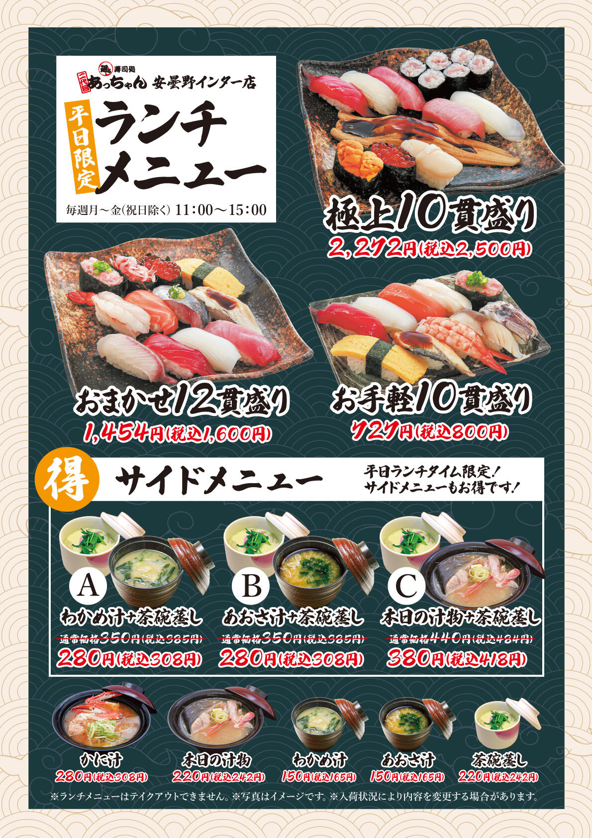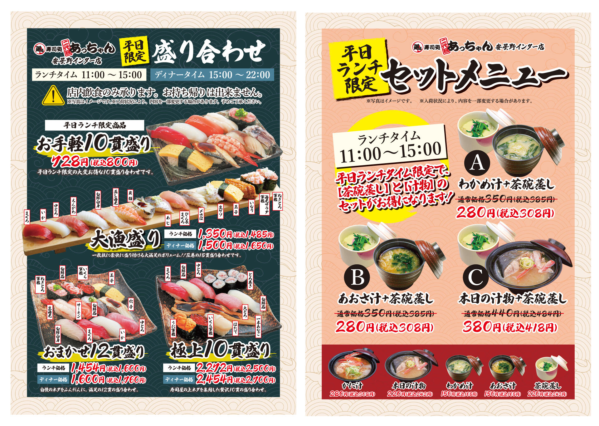 東京豊洲市場から自社便で直送だからネタが新鮮!熟練の寿司職人が選び抜いた逸品をお客様にご提供します。 こじんまりとした店内は、カウンター席、テーブル席、小上がり席とご用意。どの席からも職人との距離が近く、お好きなものを直接ご注文いただけます。 黒板には毎日その日のおすすめが書かれており、職人と会話を楽しみながら旬の魚を召し上がることも出来る本格的な回転寿司です。 また、テイクアウトの注文も承っております。WEBサイトよりご注文いただきますと、10%割引を実施しておりますので是非この機会にご活用ください。 (電話注文の場合は、前日までの予約で10%割引となります。)