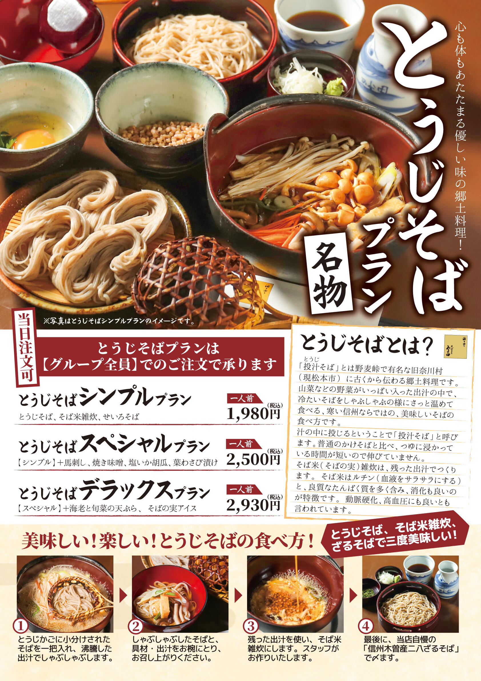 2月28日パルコ松本店が閉館となりましたが、「そばきり みよ田 松本パルコ店」は、店名を変え、3月以降も営業を継続いたします。新しい店名は「そばきり みよ田 松本伊勢町店」。3月6日より営業を再開いたします。県内産玄そばを自社製粉し、名物「とうじそば」もランチ、ディナー共に期間限定で提供しております。その他、焼き味噌、馬刺し、山賊焼きなど、お酒に合う単品料理もございます。松本の郷土料理を満喫しながら、落ち着いた店内でごゆっくりお過ごしください。