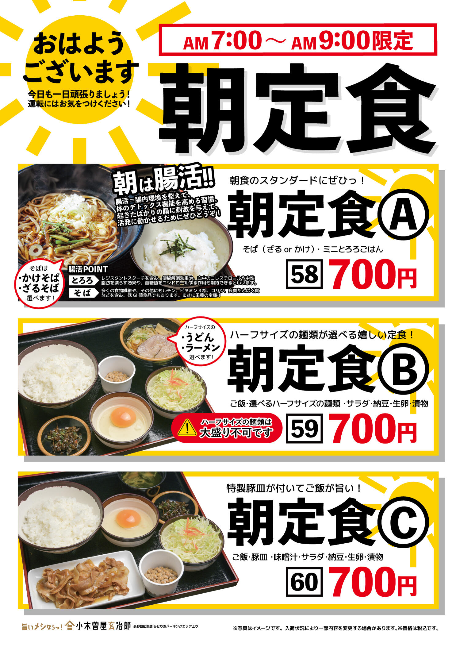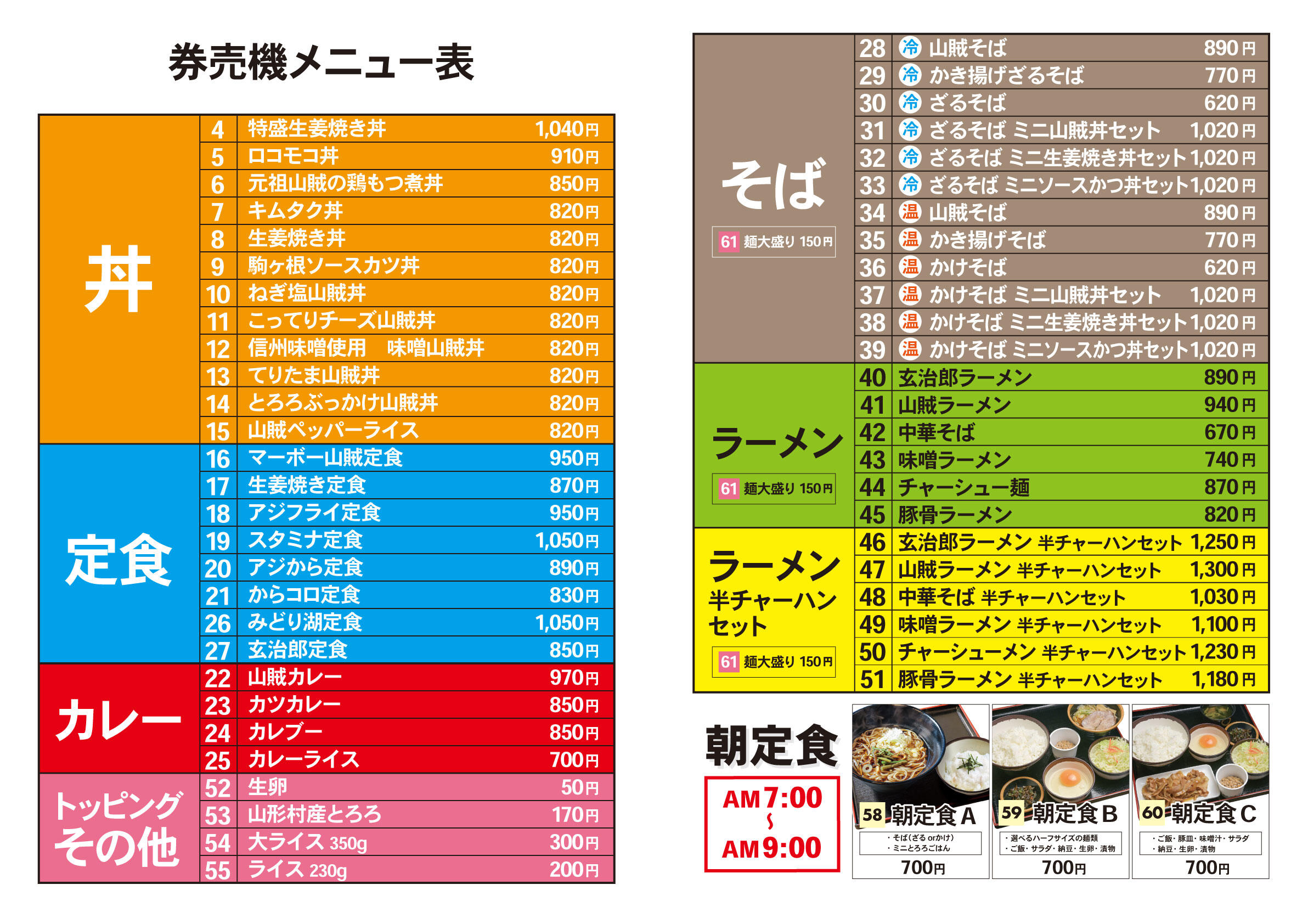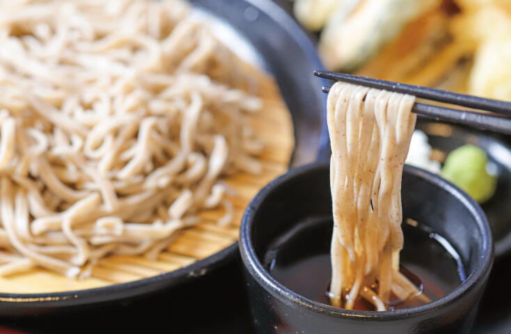 小木曽屋玄治郎では、自社製粉のそば粉を使用した本格的「二八そば」や「わらじかつ」などボリュームを重視したメニューを約50種類ご用意。スーベニアでは、松本エリアの老舗菓子店のお土産や果物、農産物なども取り扱っております。