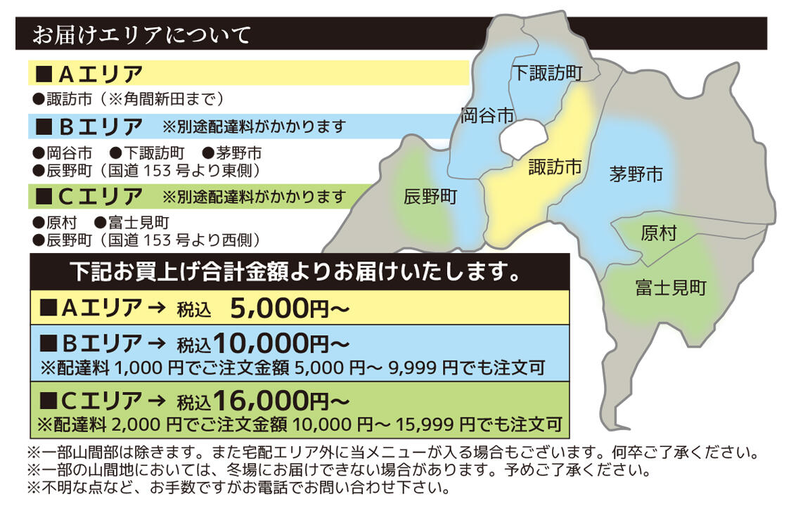 お届エリアにつきましては、お問合せください。