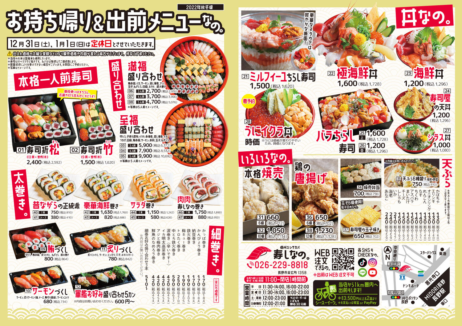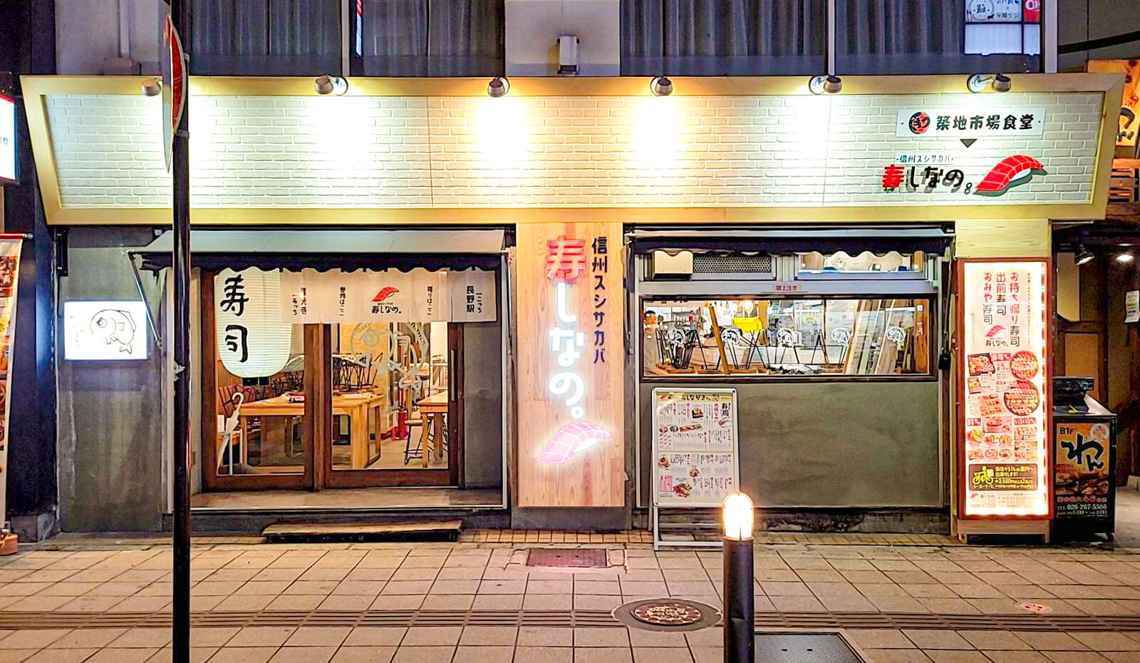 お寿司・・・・・おまかせコースの高級店からリーズナブルな回転ずしまで、スーパーやコンビニにも並ぶ今や日本が誇る世界で人気の”地球食”。 そんな寿司と一緒に、気軽に楽しく呑めて、お腹も満たせて、仲間と笑えるお店は、ありそうでなかなか少ないと思いませんか? 「信州スシサカバ 寿しなの。」は呑みにもディナーにもテイクアウトにも使える、気軽に安くて美味しい、新感覚のお寿司屋さんです。