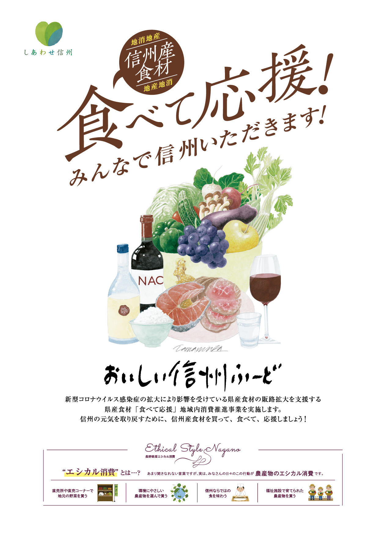 取扱店舗は店内ポスター、のぼりが目印!!信州食材を食べて、皆で信州を元気にしましょう。