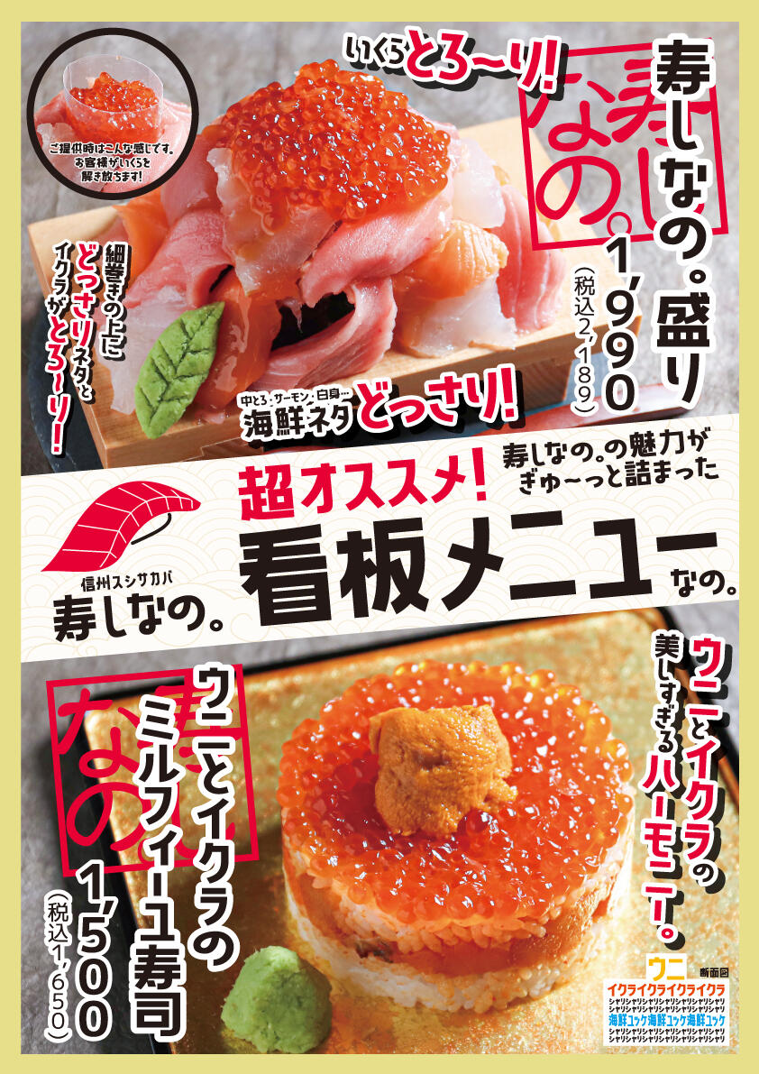 【信州スシサカバ 寿しなの。】4/1(金)オープン!!