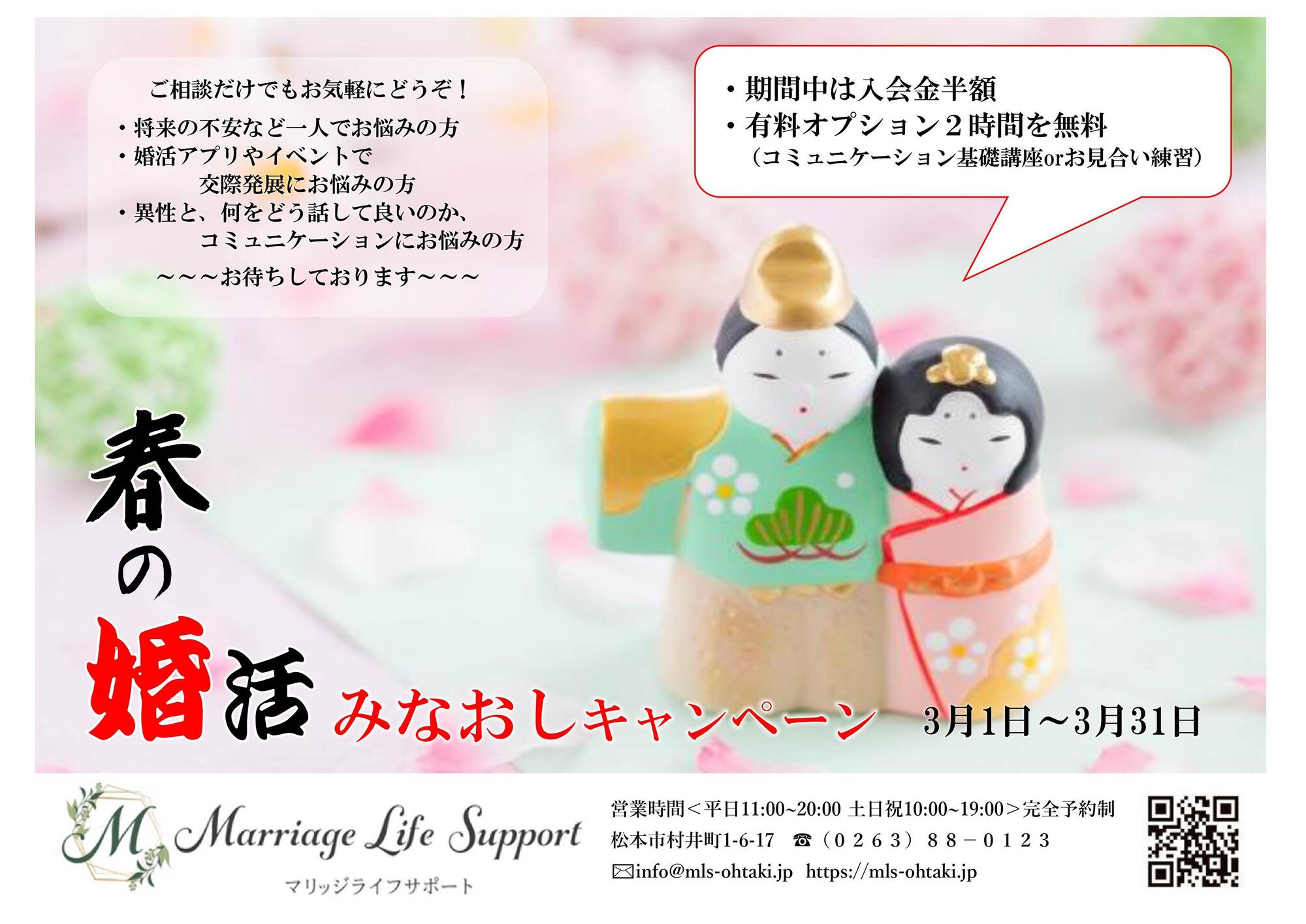 「マリッジライフサポート 結婚相談所」では、春の見直しキャンペーンを実施中です。