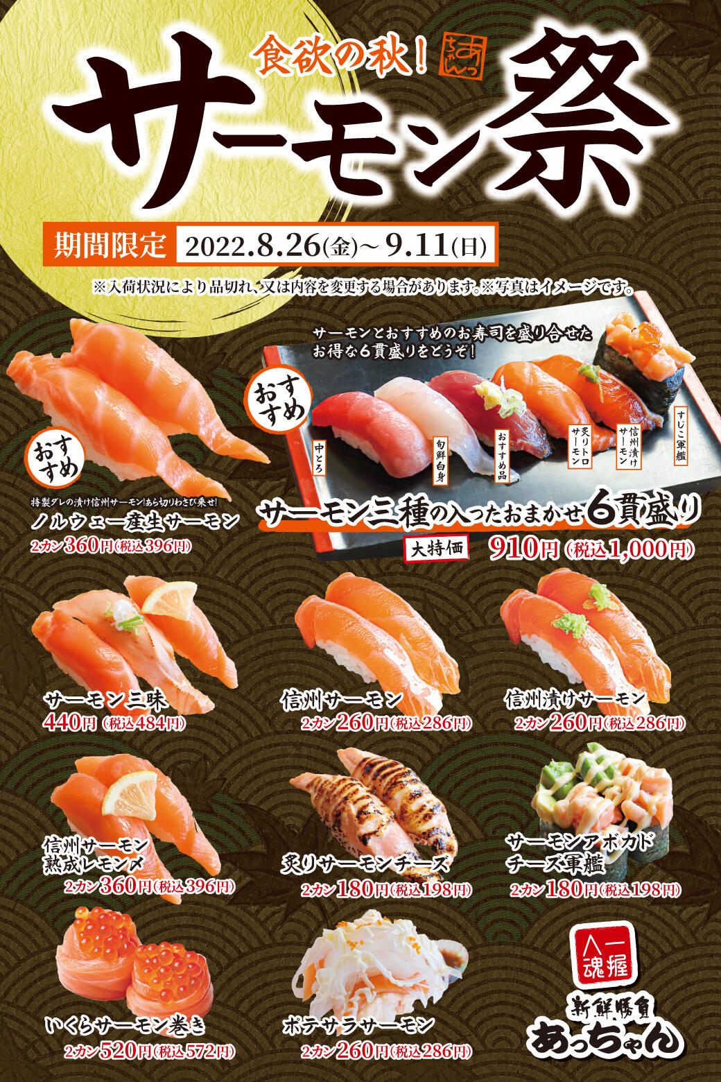 【あっちゃん】サーモン祭り 8/26(金)~9/11(日)まで開催!