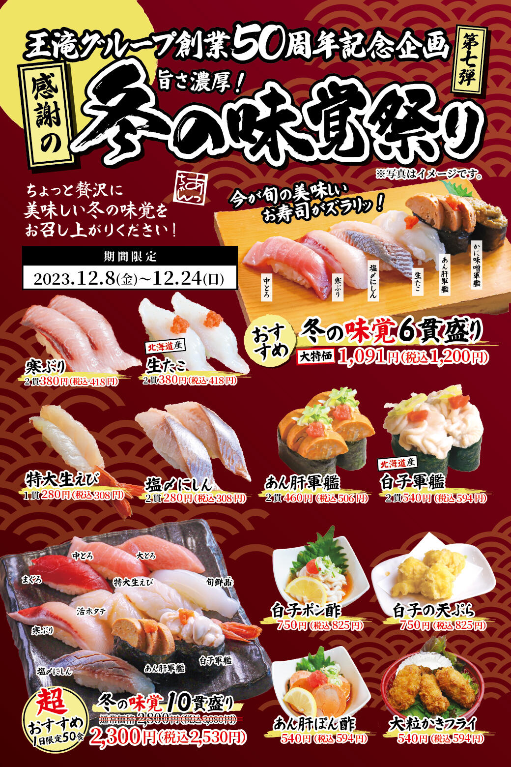 王滝グループ創業50th記念企画第七弾「冬の味覚祭り」12/8(金)~12/24(日)まで開催!