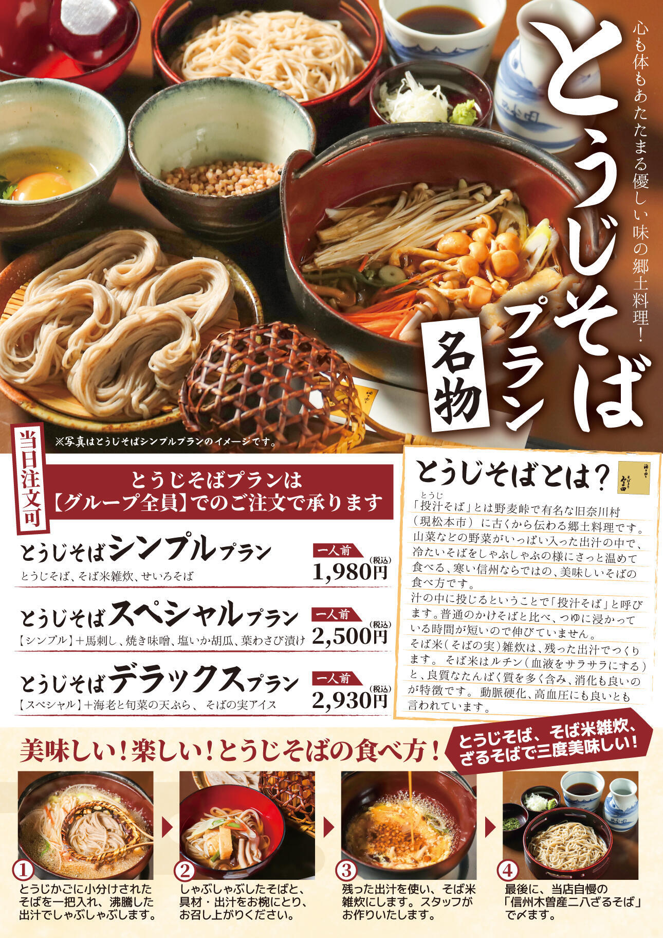 ディナータイムにとうじそばの提供を始めました。