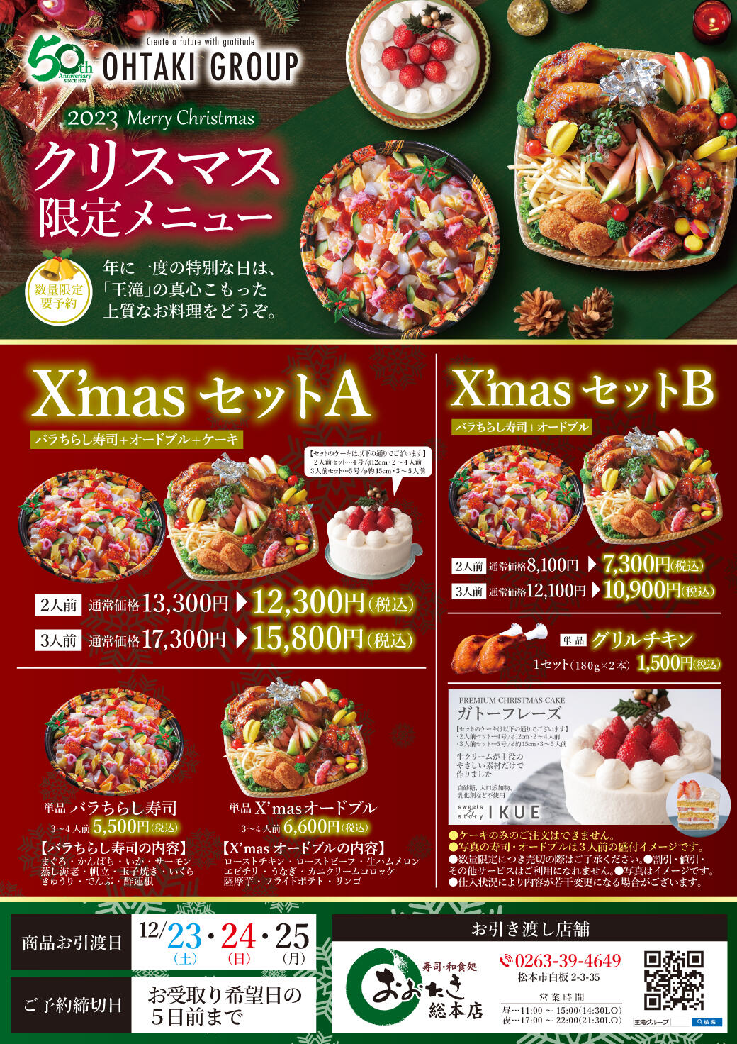 おおたき総本店のクリスマスお料理 ご予約承り中!