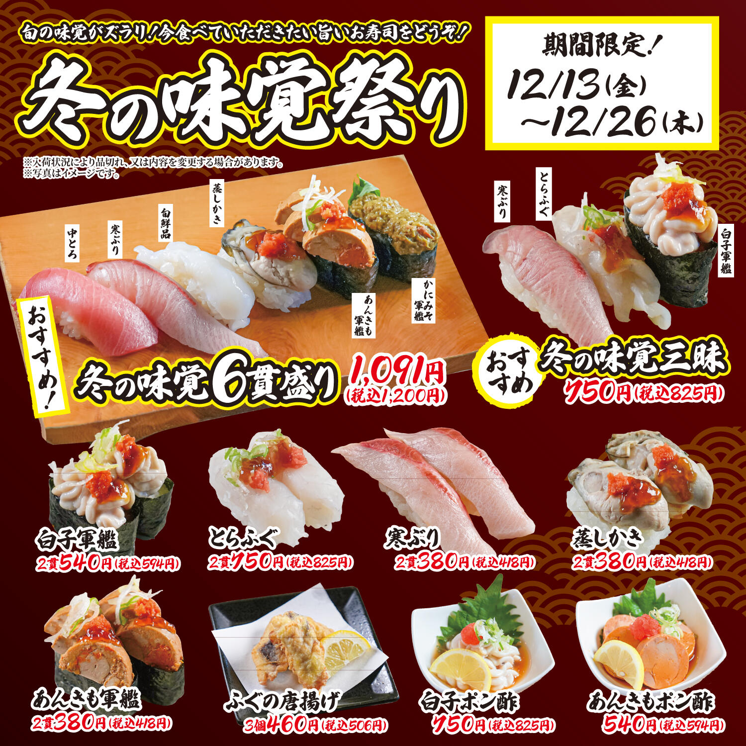 12/13(金)~12/26(木)まで「冬の味覚祭り」を期間限定で開催いたします。