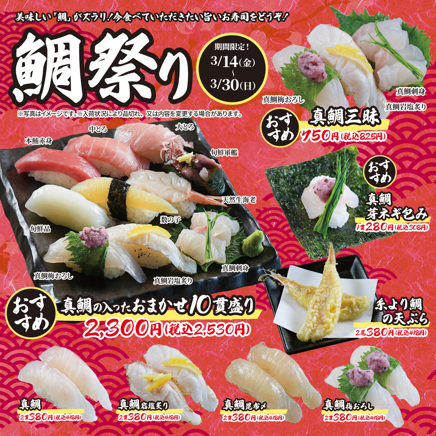 3/14(金)~3/30(日)まで「鯛祭り」を期間限定で開催いたします。