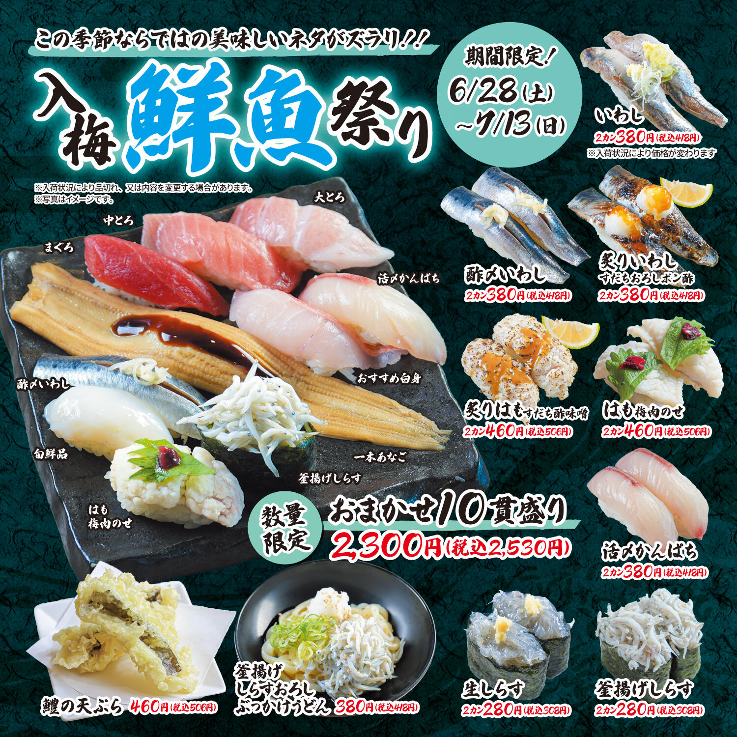 6/28(土)~7/13(日)まで「入梅鮮魚祭り」を期間限定で開催いたします。