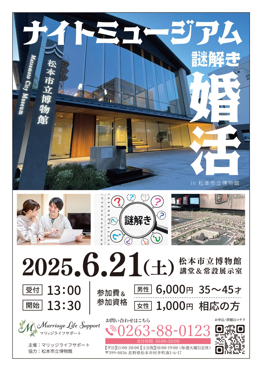 今回は松本市立博物館の協力で特別に夜の博物館での婚活イベントです。