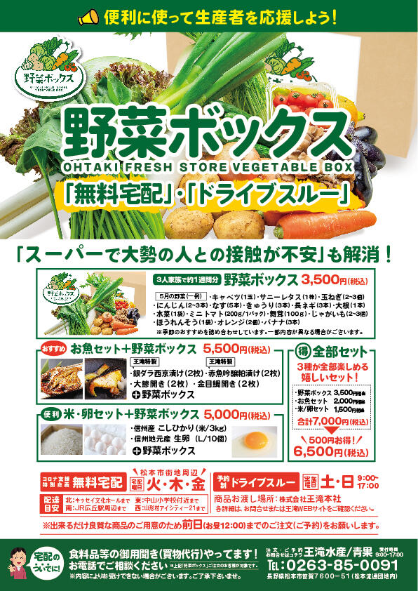 下記店舗では、テイクアウトのWEB予約を始めました! 各店舗のWEBサイトはこちら 【おおたき 総本店】 https://www.ohtakisohonten.com/ 【王滝 安曇野店】 https://www.ohtakiazumino.com/ 【あっちゃん 村井本店】 https:/...