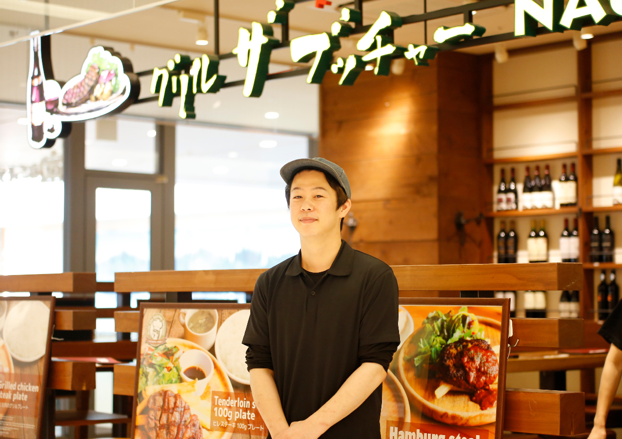 駅ビルという立地を生かし、国内外の観光客にもアピールしようと、メニューを写真入りで通路からも見えるよう掲示し、制服も一新しました。一緒に働くスタッフの意見を聞き入れながら、気軽に立ち寄れる雰囲気づくりや新しいメニューを打ち出したところ、お客様にも好評で、売り上げもアップしました。店長としてのプレッシャーはありますが、王滝グループにはチャレンジを後押ししてくれる環境がありますし、スタッフたちの協力もうれしいです。今後はソムリエ資格取得を目指し、ステーキに合うワインが提供できるカッコいい店長になりたいと思っています。