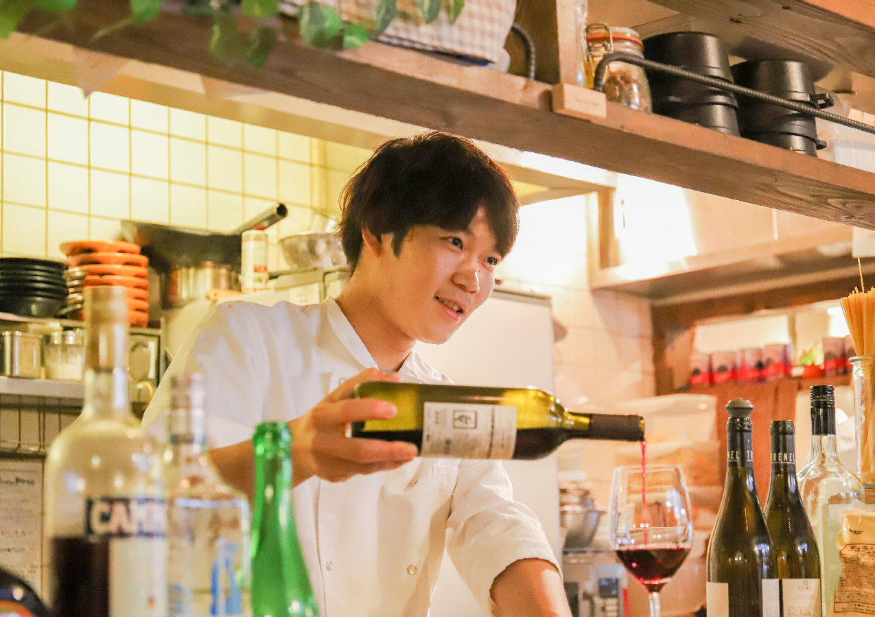 東京や軽井沢でイタリアンを学んだ後、和食調理を学ぼうとアルバイトで入社。厨房での経験が3年目を迎えた頃「君にぴったりの店がある。店長をやってみないか?」と上司から打診されました。それがバルヨバナシです。お客様に目が届く店舗の規模といい、ワインバルという業態といい、魅力はありましたが、「店長」という重責に躊躇していました。