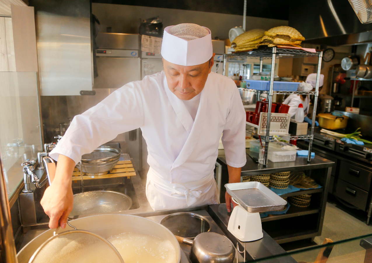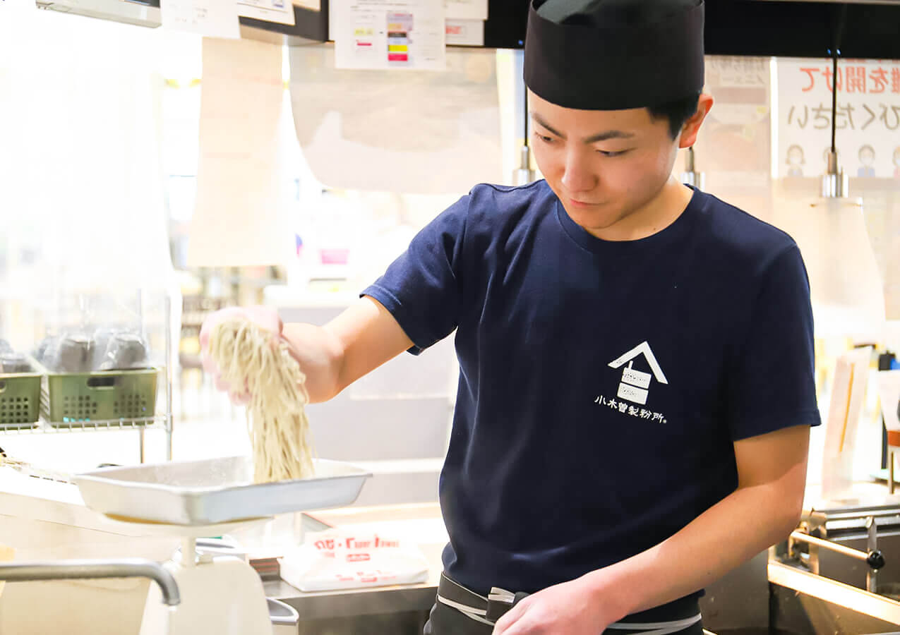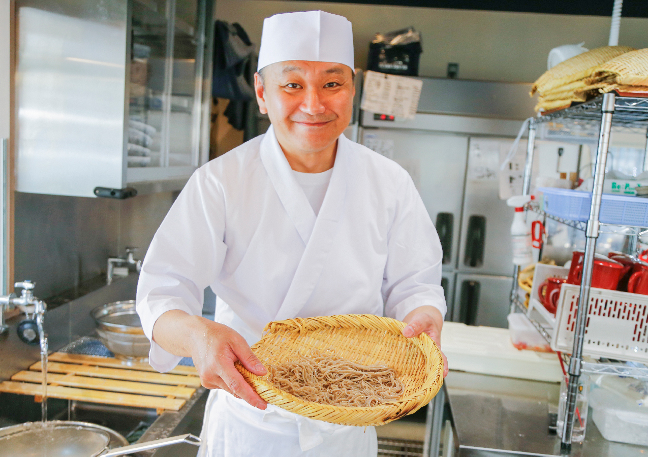 今までのキャリアの中で「そば」は初めてでしたが、自社製粉・自家製麺のそばは風味も味わいも良く、当社のこだわりを実感しています。そのこだわりのそばを引き立たせるよう、ダシを丁寧にとったり、その日のそばの状態に合わせて茹で時間を数秒単位で調整したりと、日々、工夫をしています。